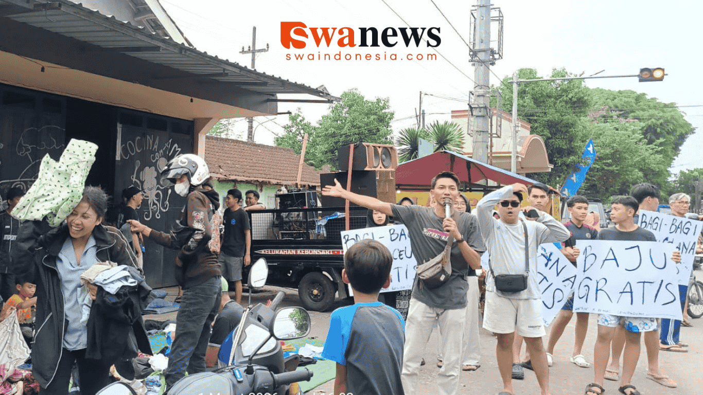 Malang, Swa News – Gaya unik berbagi di bulan Ramadan ditunjukkan Karang Taruna 04 bersama Remaja Masjid Miftahul Jannah RW 04 Lowokdoro, Kelurahan Kebonsari. Aksi bagi-bagi baju gratis yang digelar di Jalan Lowokdoro, Minggu (01/03/2026), ini sukses mengundang perhatian para pengendara yang melintas.